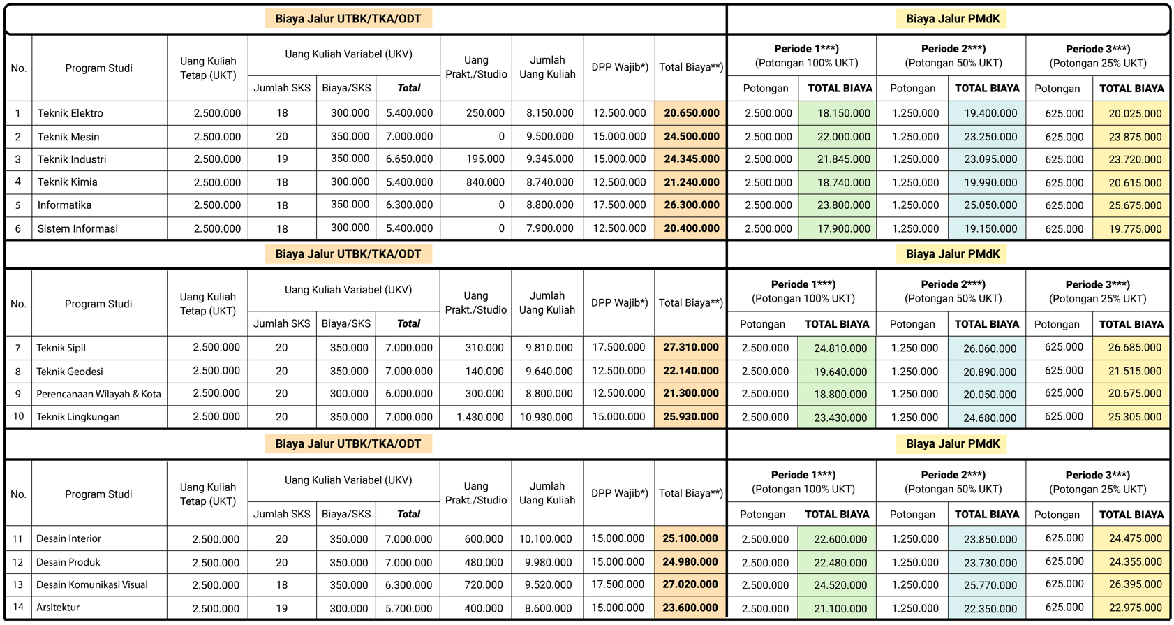 ***) Periode 1 adalah bagi pendaftar jalur PMDK periode 1 (06 Oktober – 28 Desember 2025)